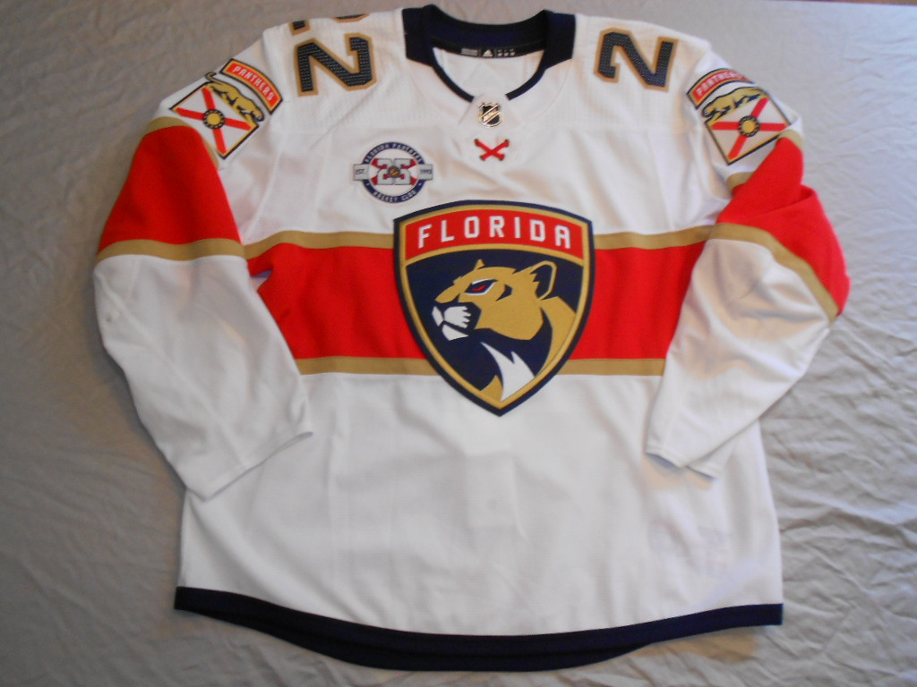 Great looking jersey that is tagged size 58 in collar. Front has the 25th patch on chest and super large crest sewn on. Both sleeves show a stickmark or two with the right sleeve being photomatched to the image shown. Back of jersey shows a stickmark above the number two and the fightstrap is still intact. Jersey comes with an LOA from the team and photo of the match.