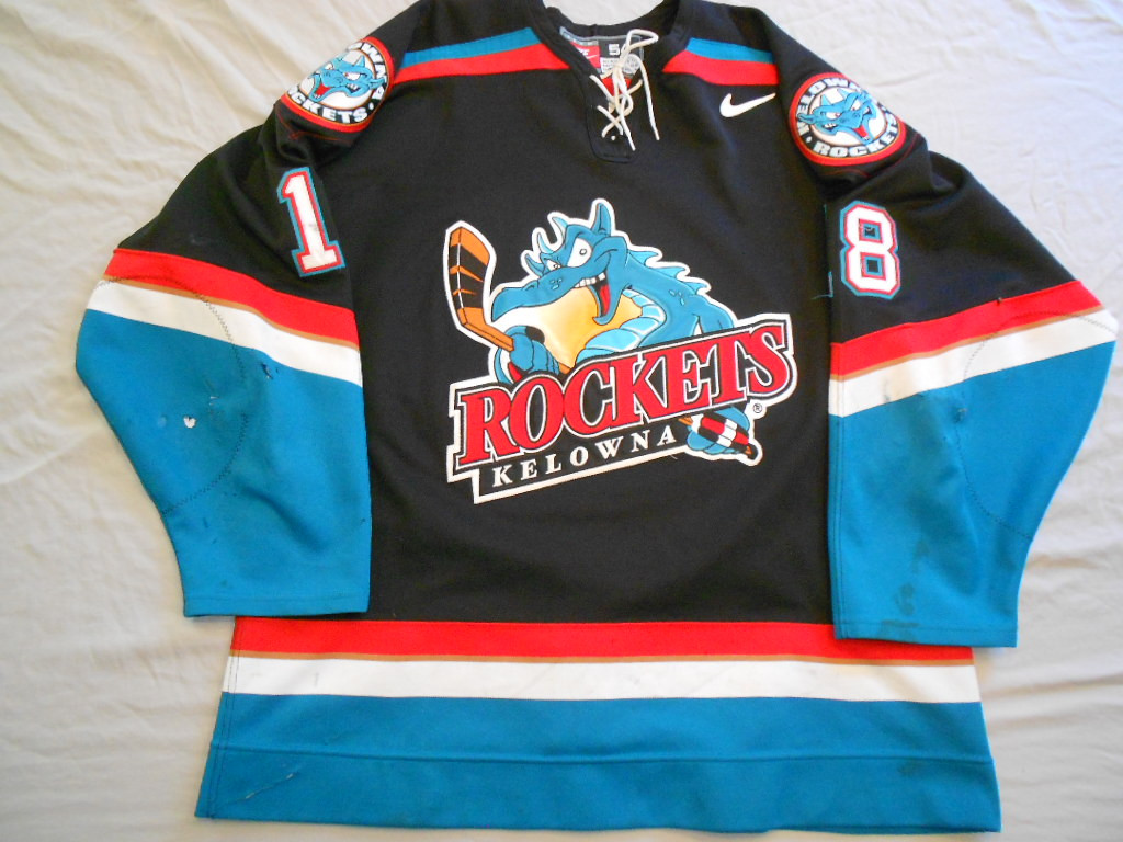 Loading... Please wait...Awesome style jersey that is tagged size 54 in collar. Great wear all around with stickmarks, boardburns and some unrepired holes. Back of jersey shows fightstrap is still intact. Jersey is a beauty!