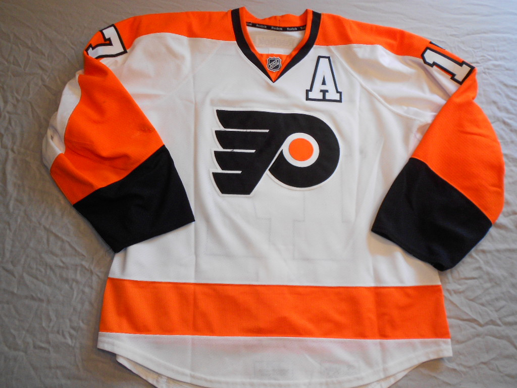 Loading... Please wait...Tagged size 56 in collar, front has the "A" on chest with a few stickmarks next to the crest. Both sleeves show nice wear with some unrepaired holes and boardburns with the right shoulder area showing a large circular cloth backed team repair at the top near the neckline. Back of jersey shows a few stickmarks, some red dasher paint and the fightstrap is still intact. Nice Set 2 jersey worn in 15 games where Wayne scores his 130th career goal and gets his 270th career point against the Columbus Blue Jackets on February 13, 2015. Comes with original LOA from the MeiGray Group.